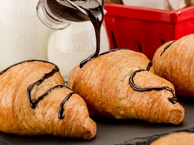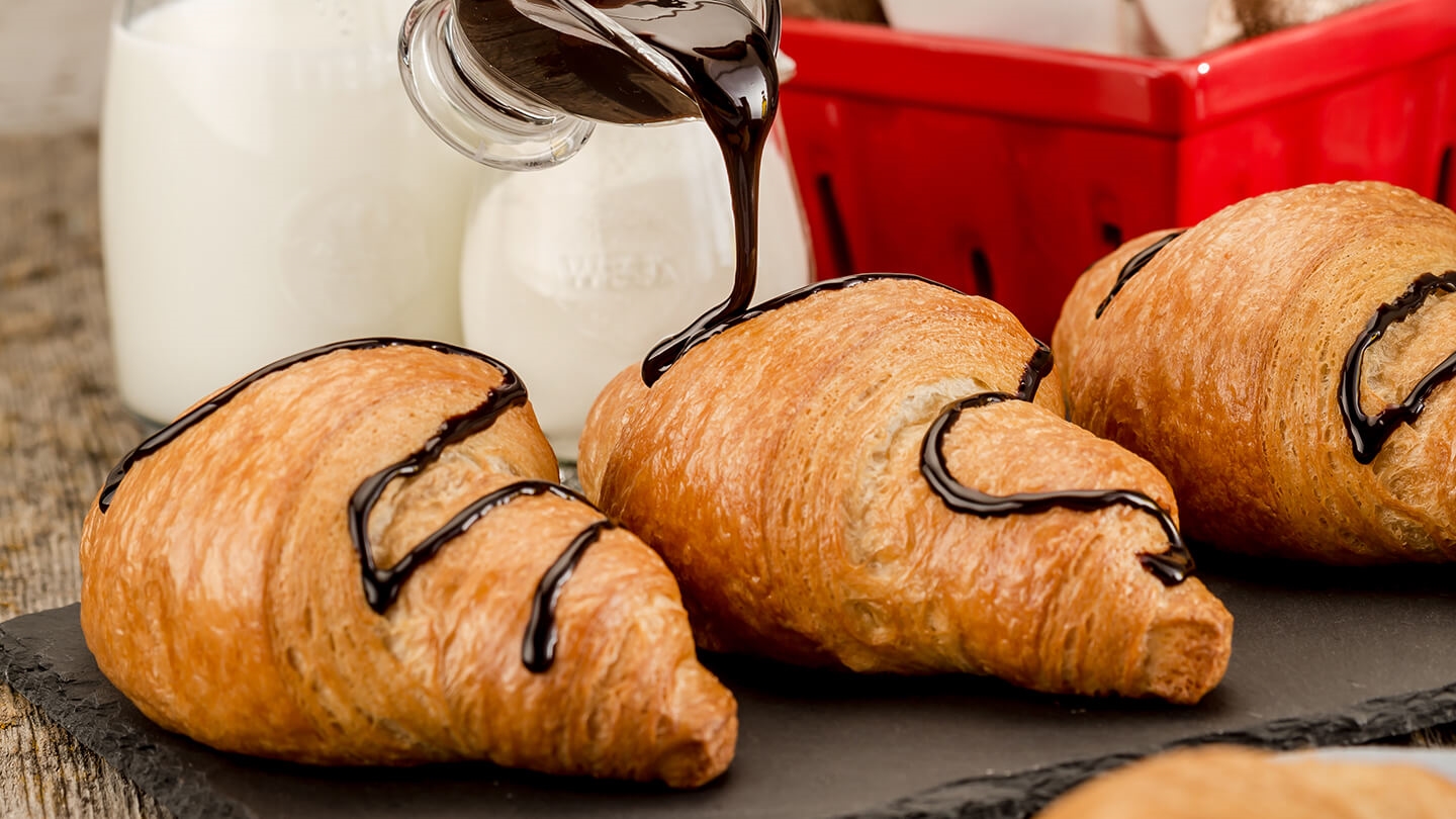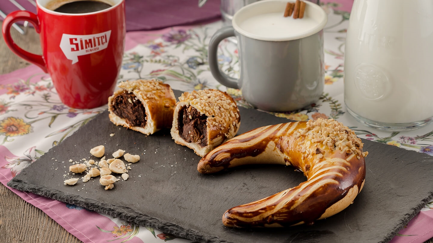 Hörnchen mit Füllung (Walnuss, Haselnuss, Kakao, Rosinen, Zimt)