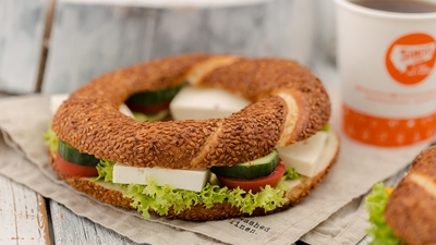 Simit-Sandwich mit Salami und Kaschkawalkäse